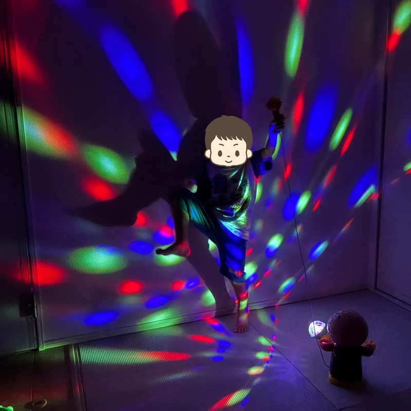 カラオケといっても、マイクはおもちゃレベルのクオリティ。しかし、このおもちゃのメインは「カラフルライト」です。部屋を暗くしてライトアップさせると、イルミネーションを見に行くよりもキラキラで楽しい空間に変わり、子供たちは大喜び。誕生日などの特別な贈り物としても最適なおもちゃです。