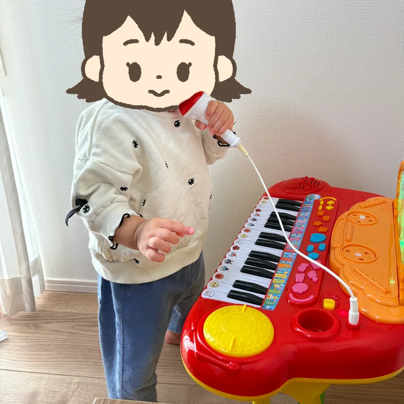 ピアノでも遊べ、マイクでも遊べる。長く遊べるおもちゃです。高い商品ですが、人気なのも納得です。