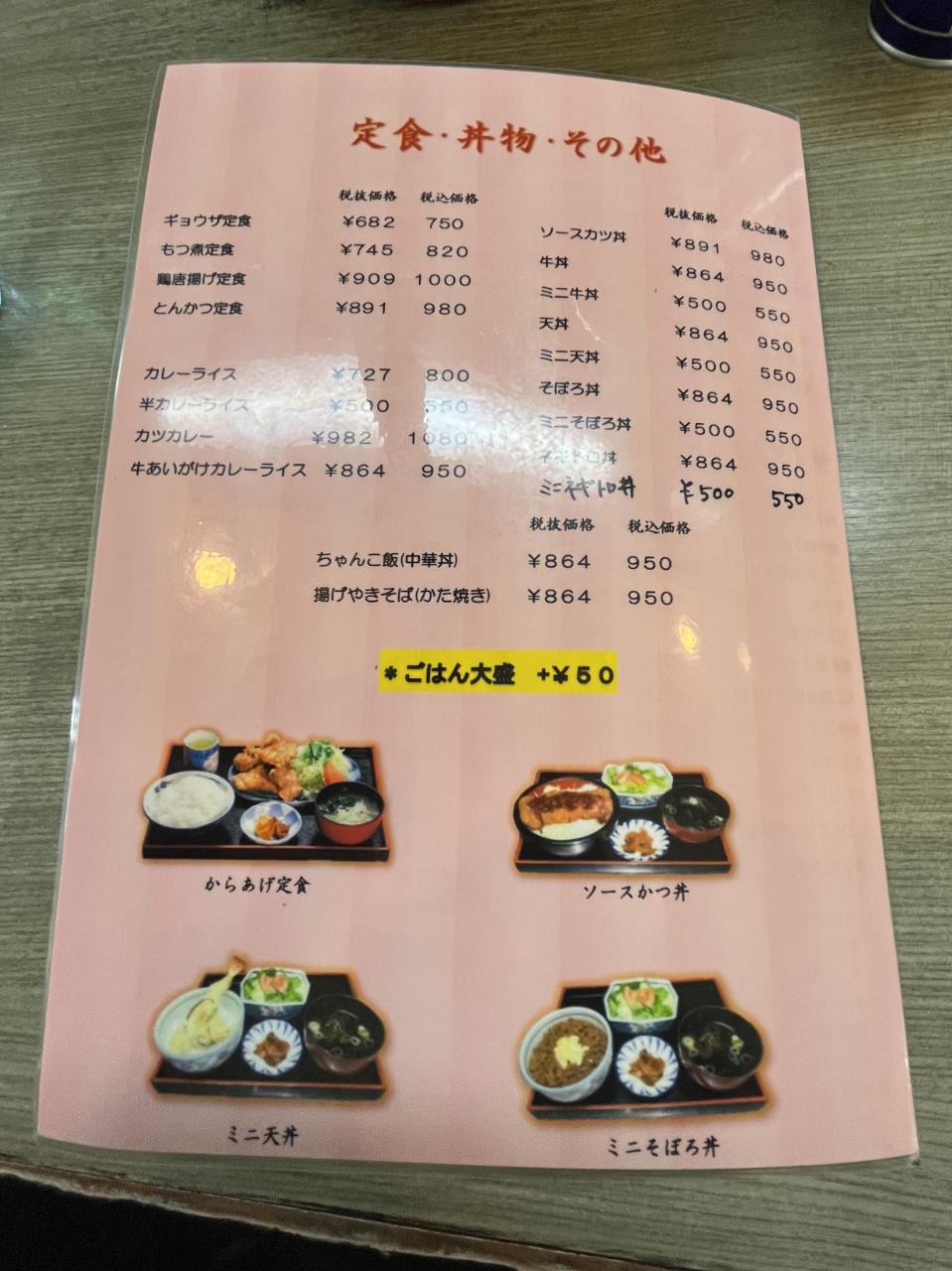 定食や丼物もあります。これだけメニューが豊富なら複数人で来ても皆食べたいものが見つかりますね!