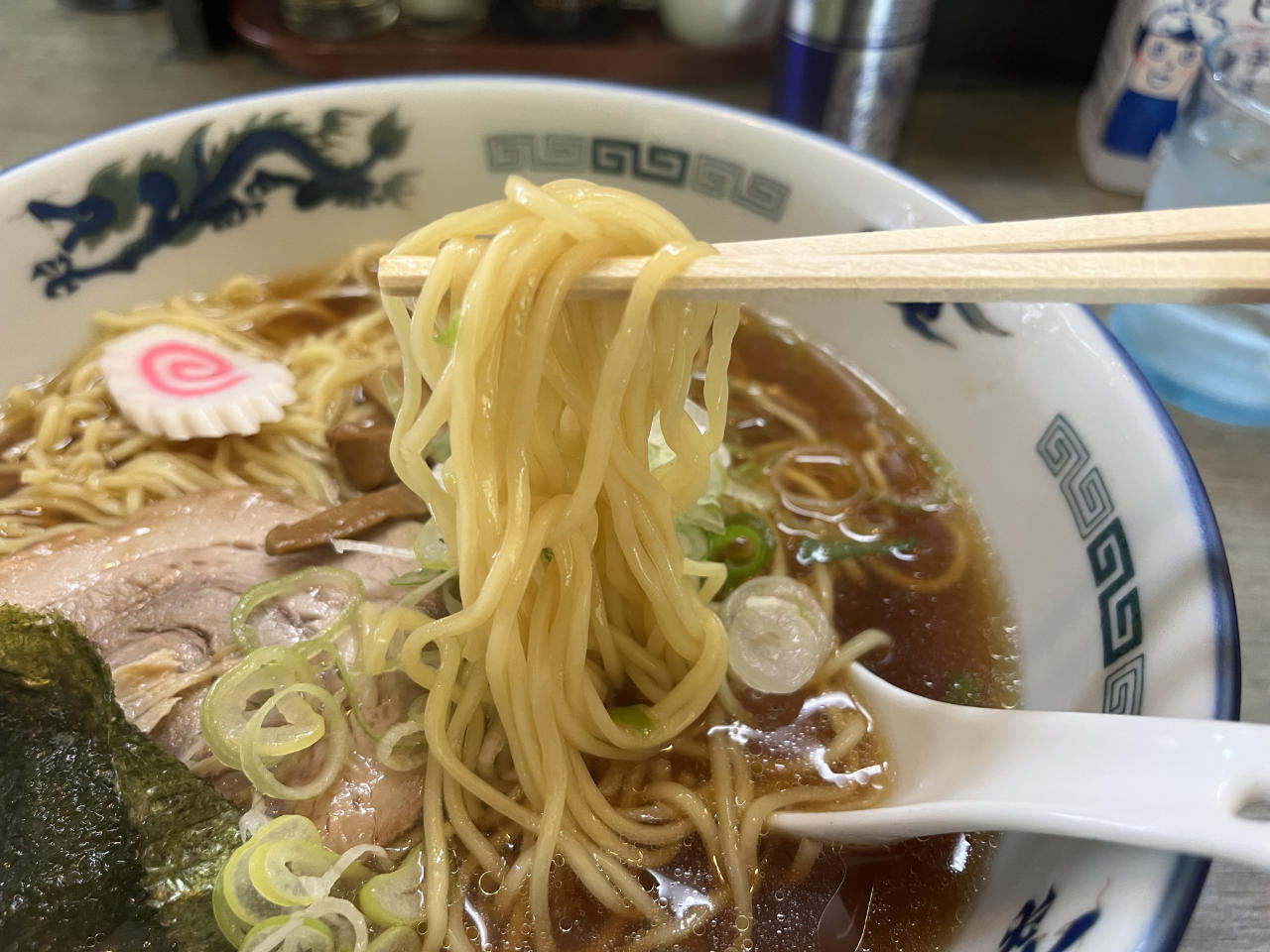 麺の細さもちょうどいい。ナルトが乗っているのがいい!