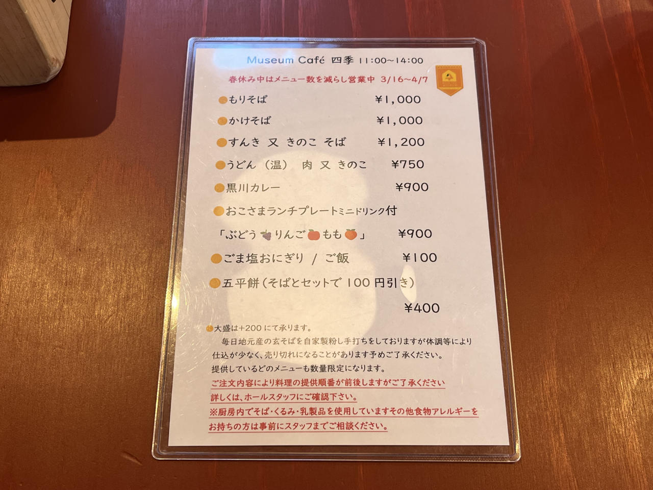 ・ミュージアムカフェ 四季:11:00~15:00(食事ラストオーダー 14:00)
