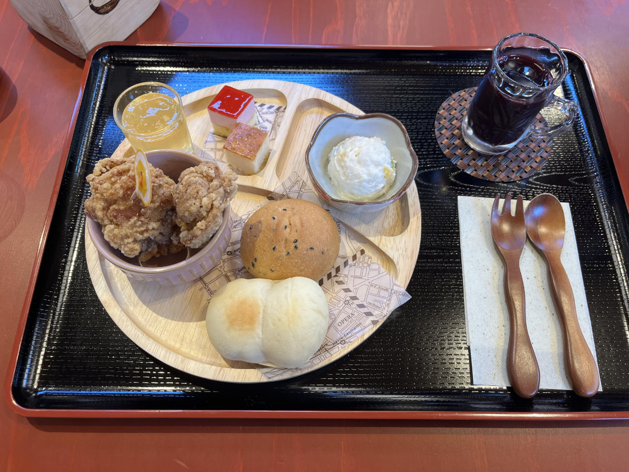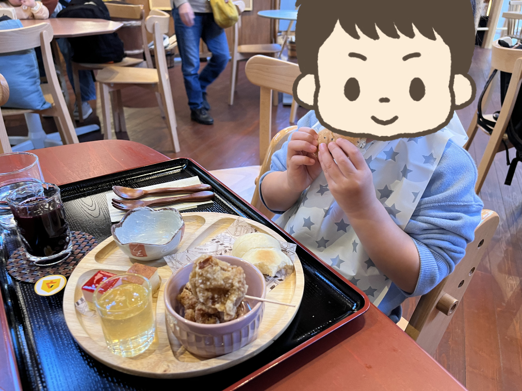 大人はカレーを食べました。しかし、おこさまプレートの唐揚げとパンがすごく良い匂いがして大人もそっちにしたかったー!と悔しい思いをしました。