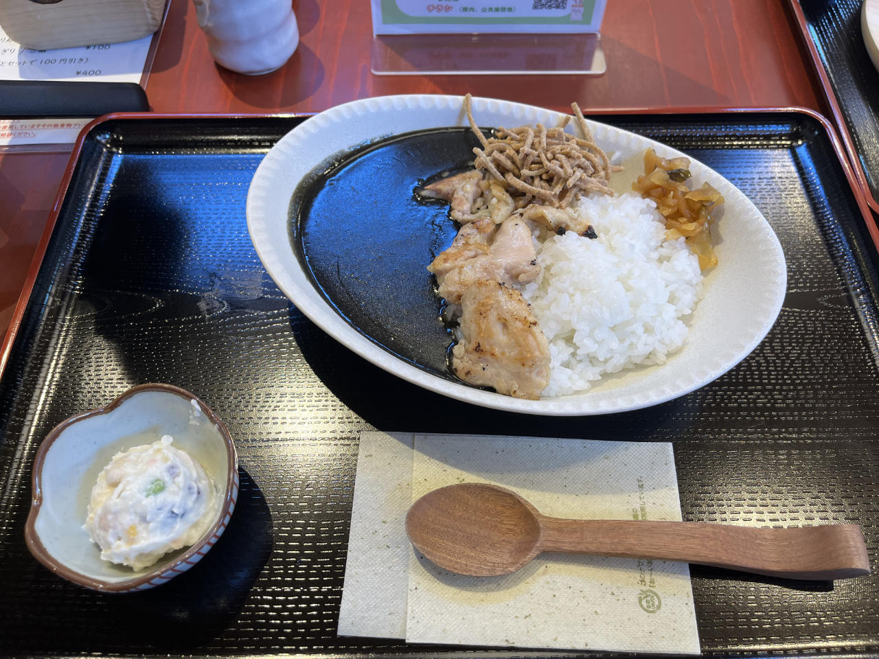 カレーです。焼いた鶏肉と揚げ蕎麦が乗っていました。なかなかボリュームがありました。かなり美味しいカレーでした。
