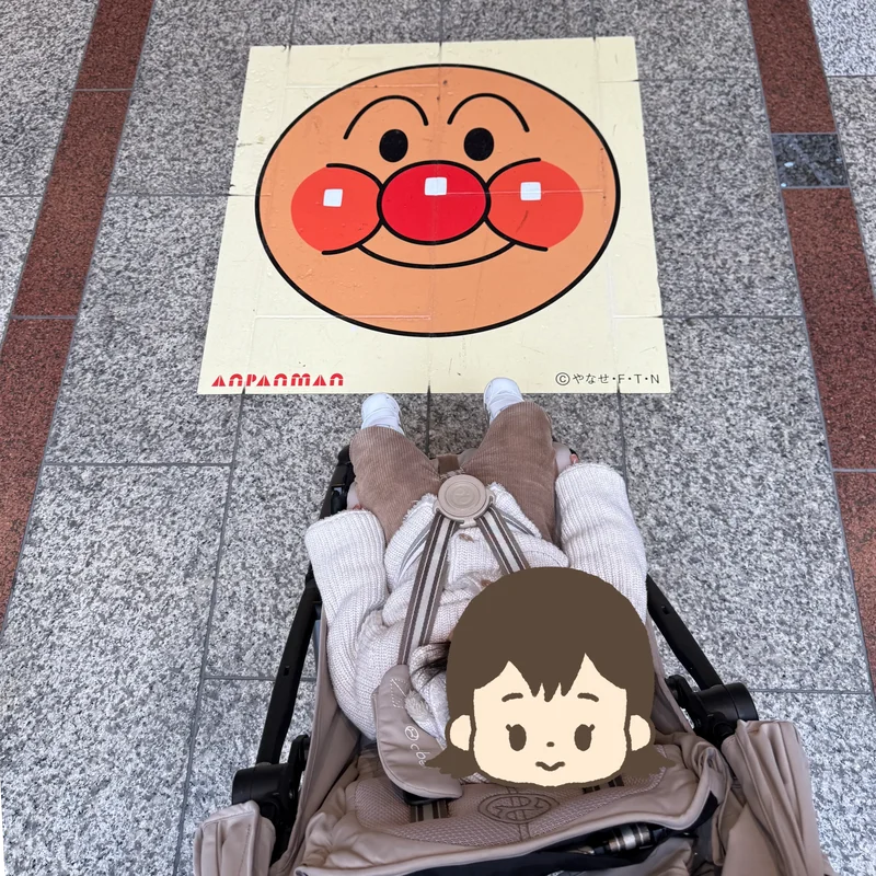それだけではありません。駅内を歩いていくと、アンパンマンのキャラクターたちが描かれた床がところどころにあるのです。駅はかなりの距離歩いた記憶がありますが、子どもも大人も絵を探すのに夢中になってあっという間の時間でした。