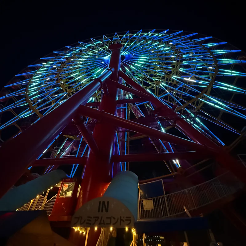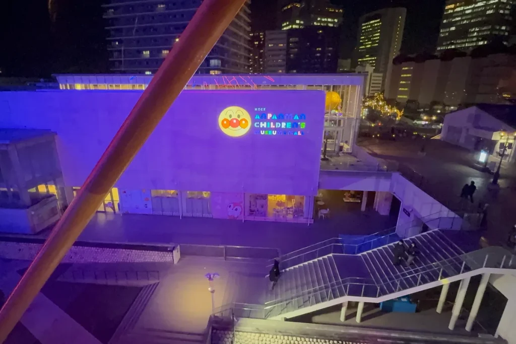 神戸アンパンマンミュージアムに隣接する「モザイク大観覧車」は昼間乗っても楽しいですが、夜の暗い雰囲気の中で乗ると、違うムードで楽しむことができます。