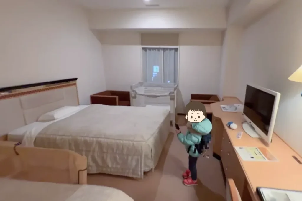 宿泊するときは子どもたちがベッドから落ちないように2台のベッドをくっつけてもらっているのですが、今回、事前にお伝えし忘れてしまったため、チェックイン後に対応してもらいました(すみません)。