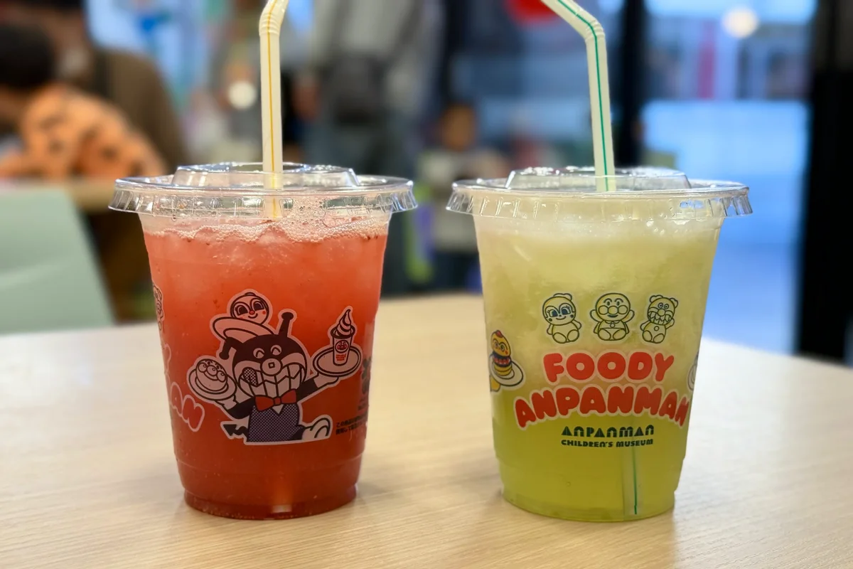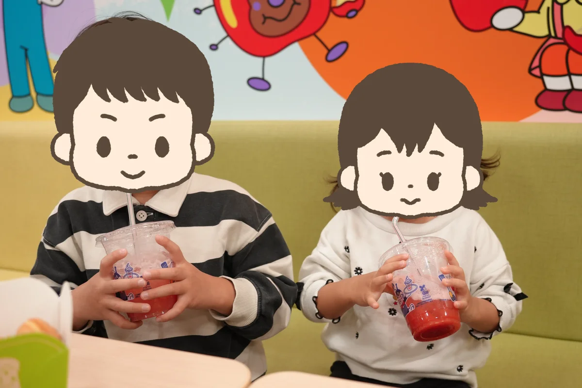 たくさん遊んで、子どもたちは疲れています。ラストまで思いっきり楽しめるため、ここで一息つきました。「フルーツ島のジュース屋さん」では、フルーツのジュースを購入することができます。近くに席は無いので、「ドキンちゃんひろば」や「イートインスペース」を活用するといいでしょう。