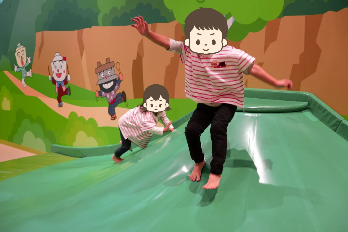 ミュージアムとばいきんひみつ基地の行き来は、長いスロープを毎回通る必要があるので、ある程度覚悟が必要です。