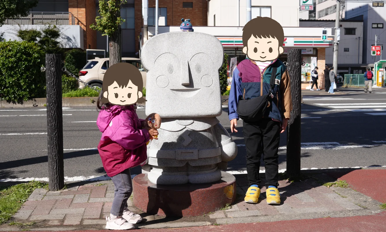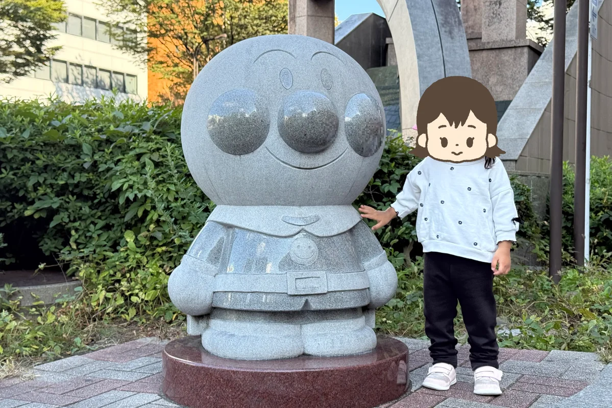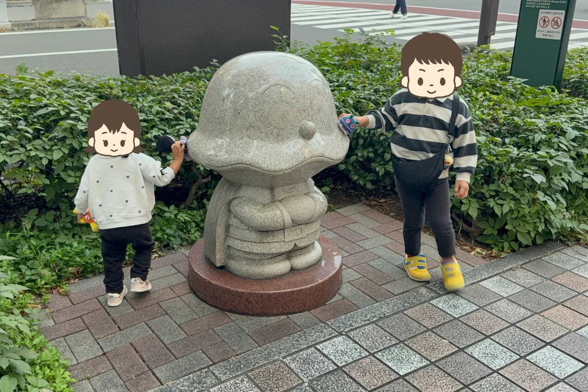 ホテルから仙台アンパンマンこどもミュージアムは、大人のペースで徒歩20分、そこそこの距離がありました。しかし、そこはデメリットとして捉えていませんでした。なぜなら、仙台駅からアンパンマンミュージアムまでの歩道には、アンパンマンたちの石像が置かれているからです!