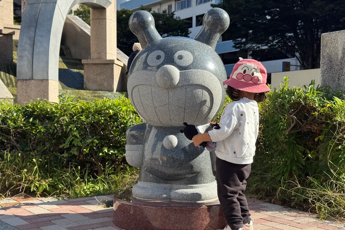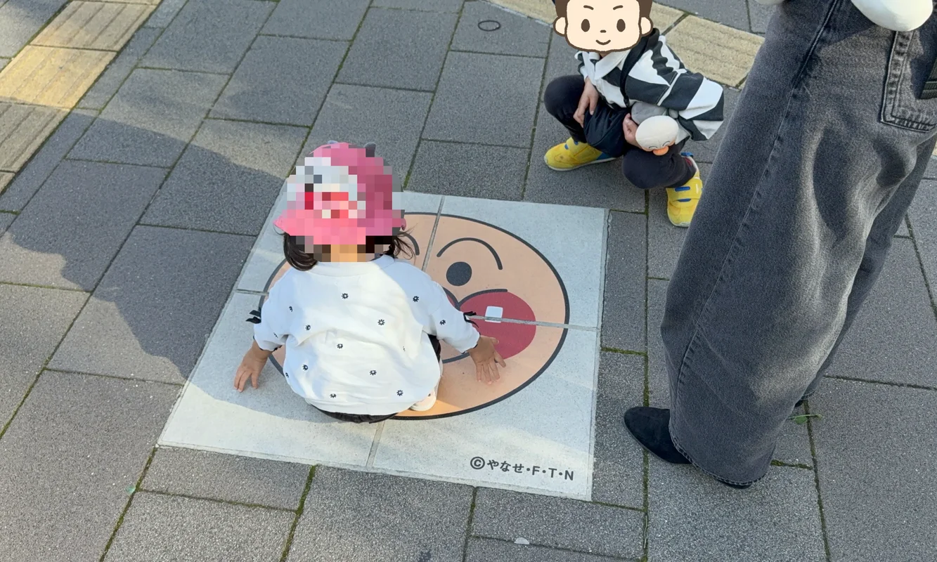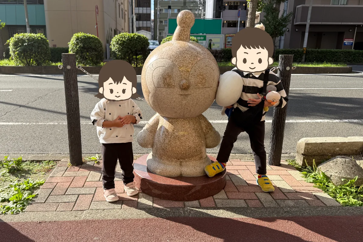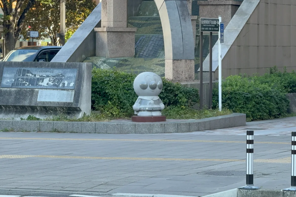 【アンパンマンストリート】歩道にはたくさんの石像が!移動も楽しめる工夫